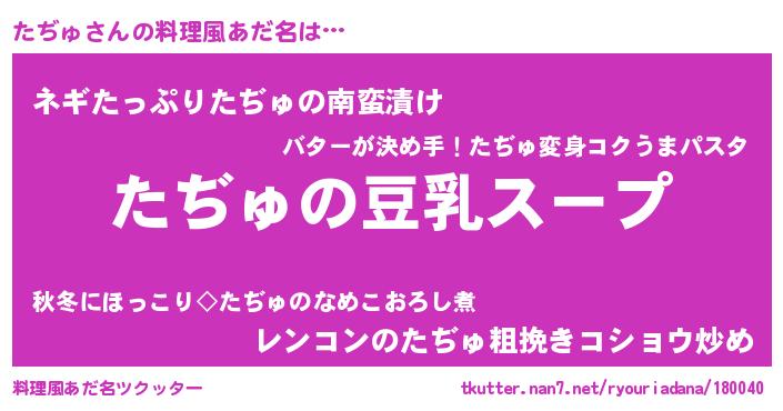 | 女子向けラノベタイトル風あだ名 | 『たぢゅは平凡を望む』『たぢゅ恋絵巻』 |