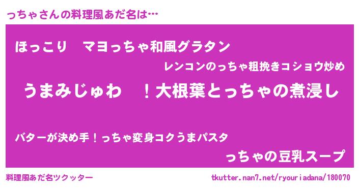 | ピコ太郎風あだ名 | 『ピッ史郎』『ッチ次郎』『ッッ太郎』 |