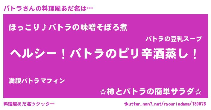| ヘコむあだ名 | 『バトにゅー』『バトっぺ』『つくし』 |
