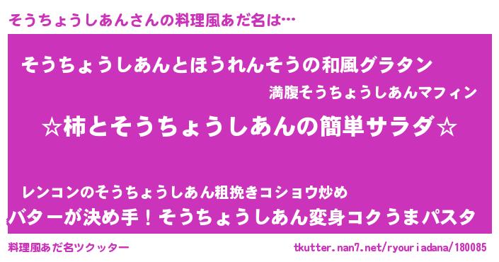 | 意味不明あだ名 | 『めかぶ科そうちょうしあん属』 |