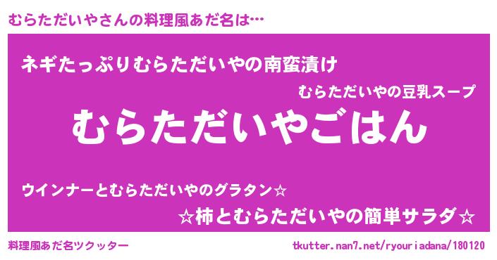 | 意味不明あだ名 | 『めかぶ科むらただいや属』 |