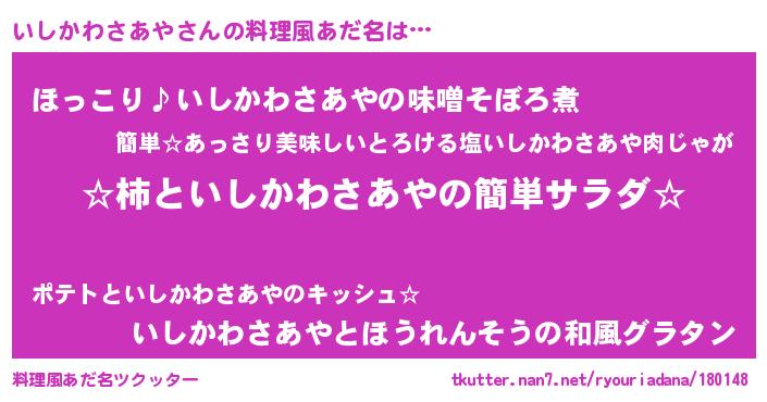 | ヘコむあだ名 | 『いしふぇ~』『いしかわさあや(小並感)』 |