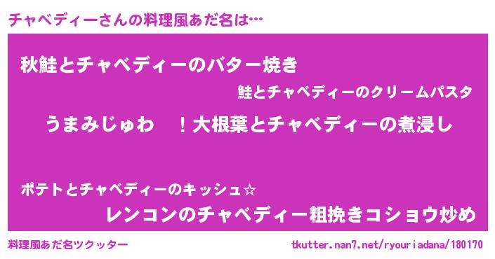 | ヘコむあだ名 | 『酢こんぶ』『チャベディー(笑)』 |