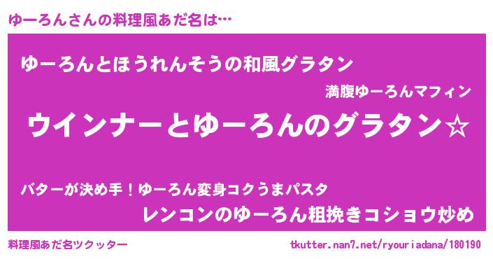 | 意味不明あだ名 | 『ゆーろんフォーエバー』『自称ゆーろん』 |