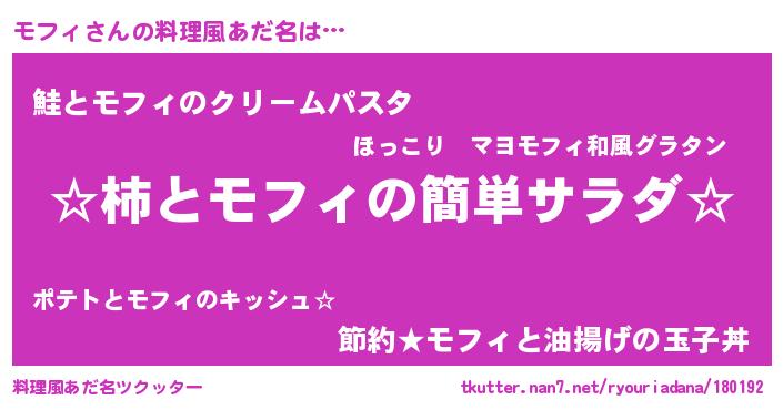 | ヘコむあだ名 | 『モフっふぃ~』『モフお』 |
