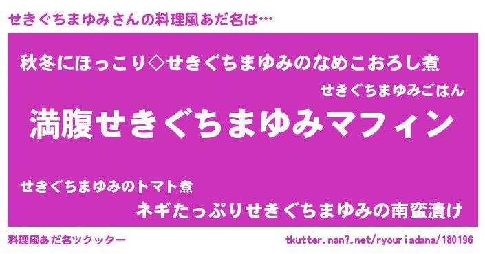 | 意味不明あだ名 | 『永久保存せきぐちまゆみ』 |