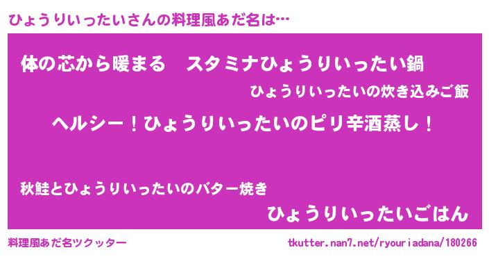 | 意味不明あだ名 | 『自称ひょうりいったい』 |