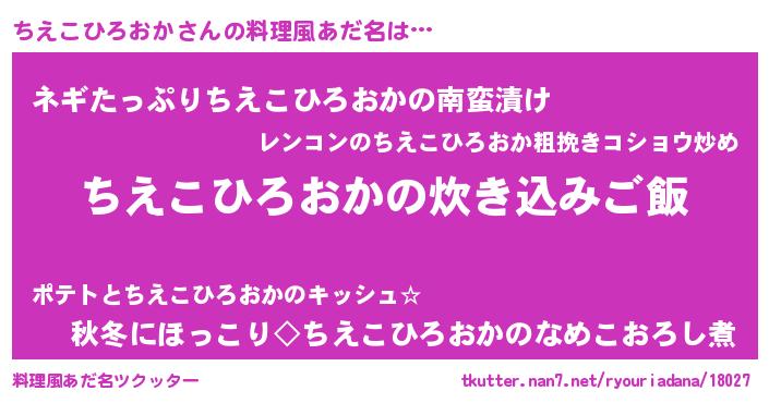 | 男性向けラノベタイトル風あだ名 | 『うちのちえこひろおかが世界を掌握している!』 |