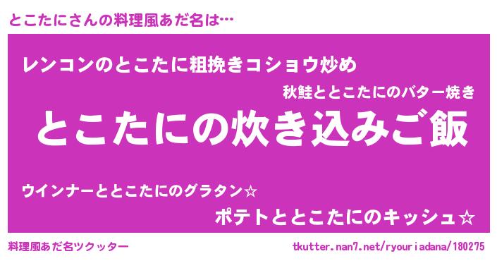 | 意味不明あだ名 | 『自称とこたに』『永久保存とこたに』 |