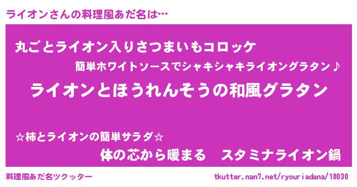 | 女子向けラノベタイトル風あだ名 | 『ライオンの玉の輿計画!』 |