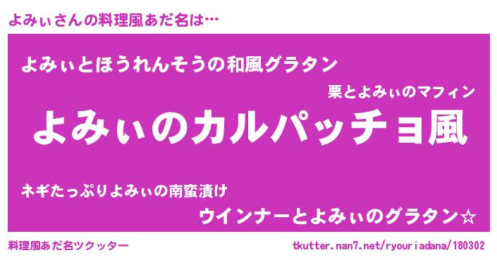 | 意味不明あだ名 | 『住所不定無職よみぃ(86歳)』 |