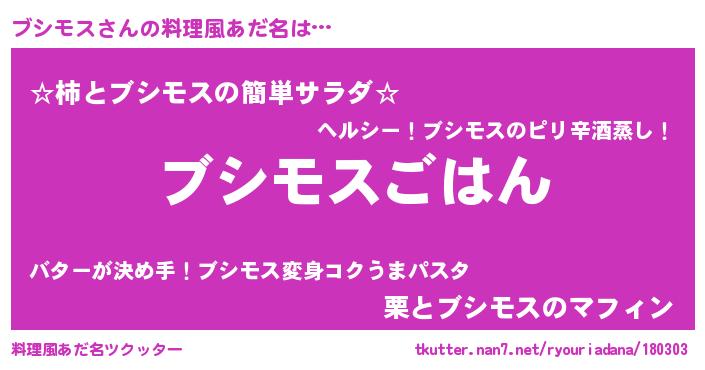 | 男性向けラノベタイトル風あだ名 | 『転生したらブシモスだった件』 |