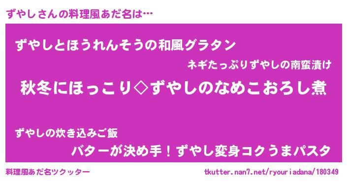 | 男性向けラノベタイトル風あだ名 | 『ずやしに滅ぼされるだけの簡単なお仕事です』 |