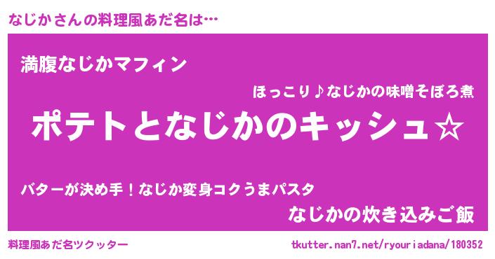| ヘコむあだ名 | 『なじお』『なじか(遠い目)』『豆乳』 |