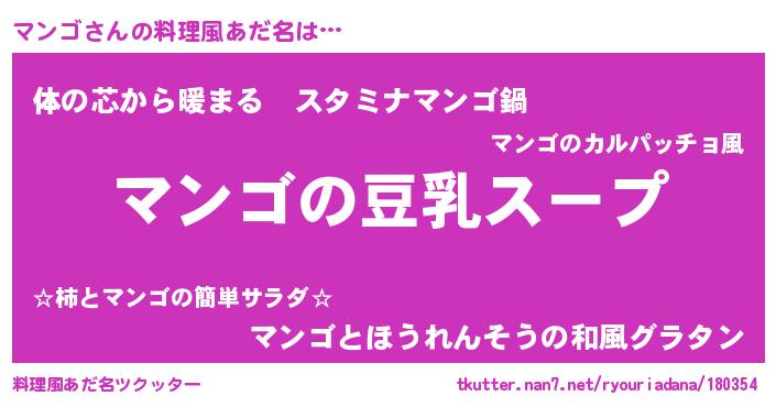 | 女子向けラノベタイトル風あだ名 | 『マンゴは平凡を望む』 |