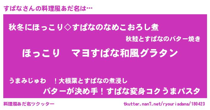 | 意味不明あだ名 | 『住所不定無職すぱな(14歳)』 |