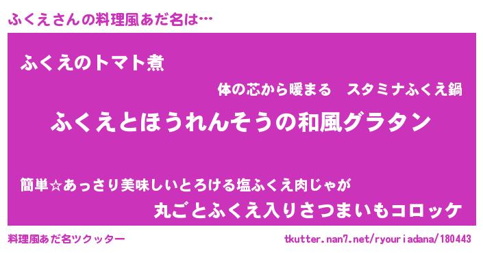 | 男性向けラノベタイトル風あだ名 | 『転生したらふくえだった件』 |