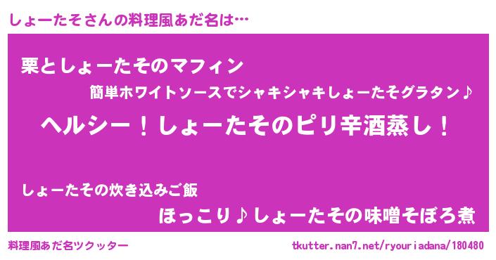 | 胡散臭い通販商品みたいなあだ名 | 『芸能人もオススメするアガリクス…その名も「しょーたそ」』 |