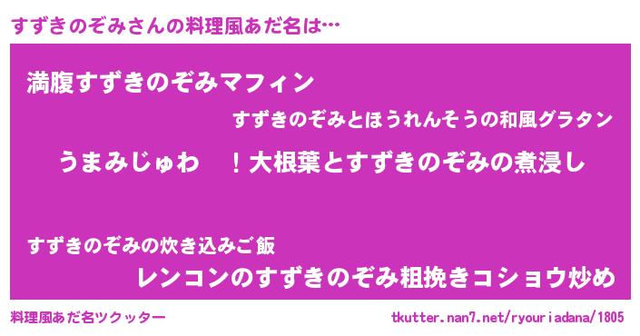 | ヘコむあだ名 | 『レバニラ』『すずきのぞみ(震え声)』 |
