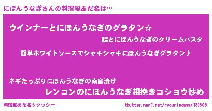 | 萌えアニメ | 主人公(にほんうなぎ)のあだ名『 にほにほきゅん』 |