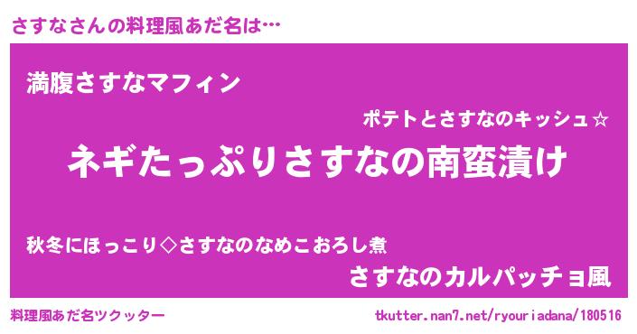 | ピコ太郎風あだ名 | 『サコ六郎』『ピコサ郎』『サス一郎』 |