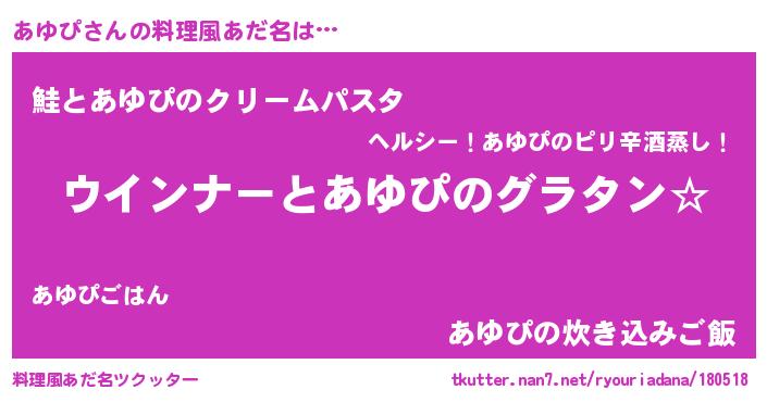 | 意味不明あだ名 | 『あゆぴフォーエバー』『自称あゆぴ』 |