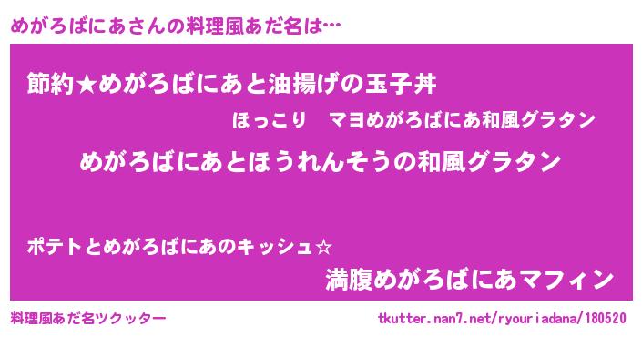 | ヘコむあだ名 | 『めがにゅー』『めがろばにあ(震え声)』 |