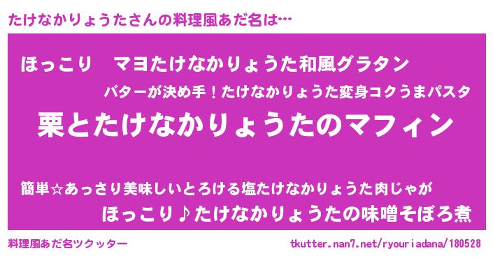 | ヘコむあだ名 | 『たけもー』『たけなかりょうた(笑)』 |
