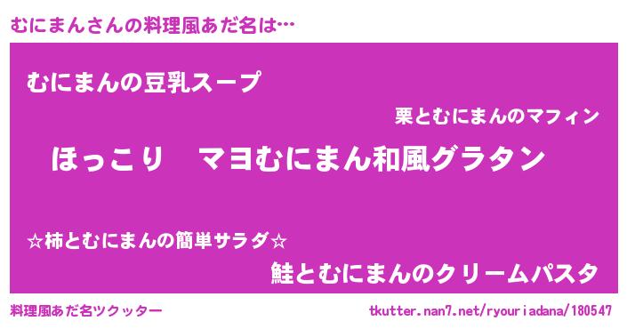 | 男性向けラノベタイトル風あだ名 | 『この素晴らしい世界にむにまんを!』 |