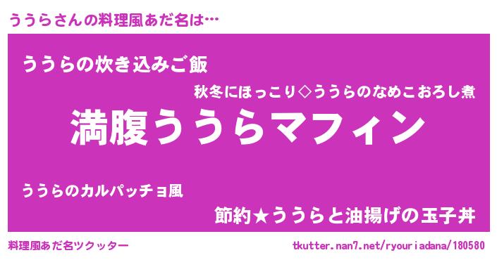 | 意味不明あだ名 | 『永久保存ううら』『ペロリンううら』 |