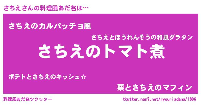 | 女子向けラノベタイトル風あだ名 | 『さちえ夫妻のなれそめ』 |