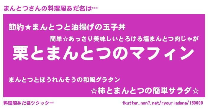 | ヘコむあだ名 | 『まんにゅー』『まんとつ(笑)』 |