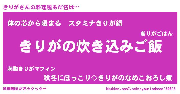 | ヒーロー風カッコイイあだ名 | 『ウルトラきりがマン』『ネオキリガ』 |