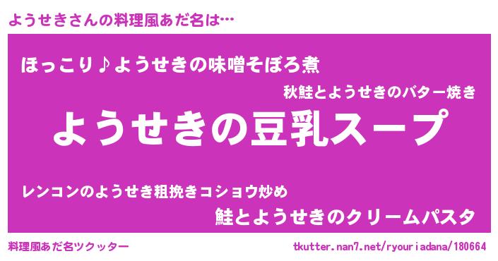 | ヘコむあだ名 | 『ようぷりん』『ようにー』『つくし』 |