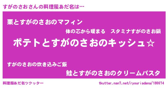| ピコ太郎風あだ名 | 『スガ史郎』『スス太郎』『ピス史郎』 |