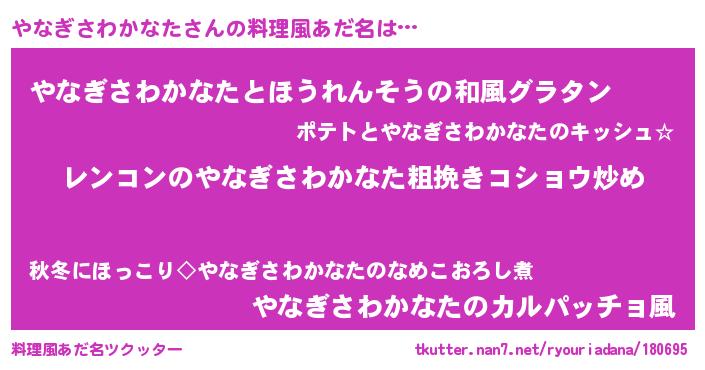 | 胡散臭い通販商品みたいなあだ名 | 『テレビで話題の高麗人参…その名も「やなぎさわかなた」』 |