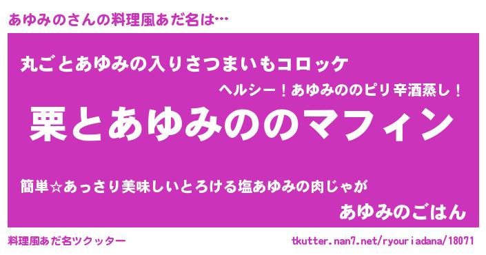 | ヒーロー風カッコイイあだ名 | 『仮面アユダー』『最強戦士アユミノ』 |