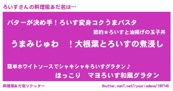 | 女子向けラノベタイトル風あだ名 | 『ろいすの婚約者』『ろいす恋絵巻』 |