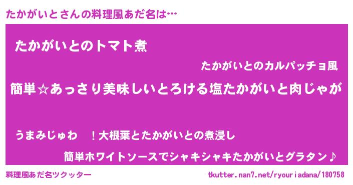 | ヘコむあだ名 | 『たかがいと(苦笑)』『たかを』 |