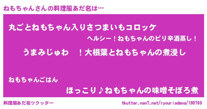 | ヘコむあだ名 | 『酢こんぶ』『ねもふぇ~』『ねもお』 |