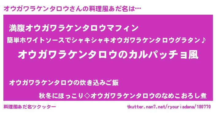 | ヘコむあだ名 | 『オウガワラケンタロウ(苦笑)』『オウっ子』 |