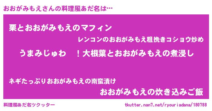 | 意味不明あだ名 | 『おおがみもえフォーエバー』 |