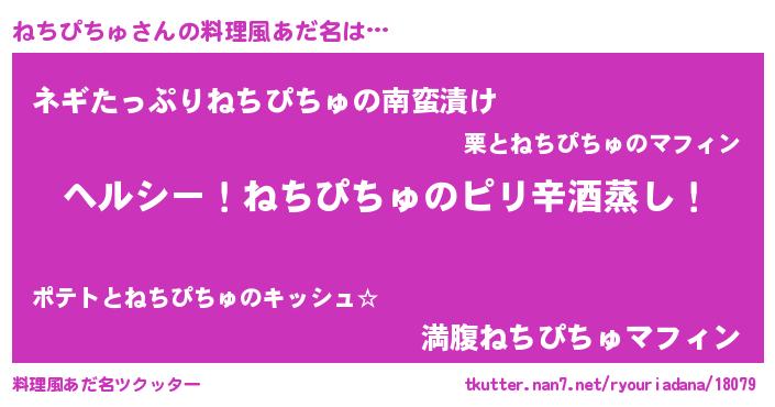 | 男性向けラノベタイトル風あだ名 | 『Re:ねちぴちゅから始める異世界生活』 |