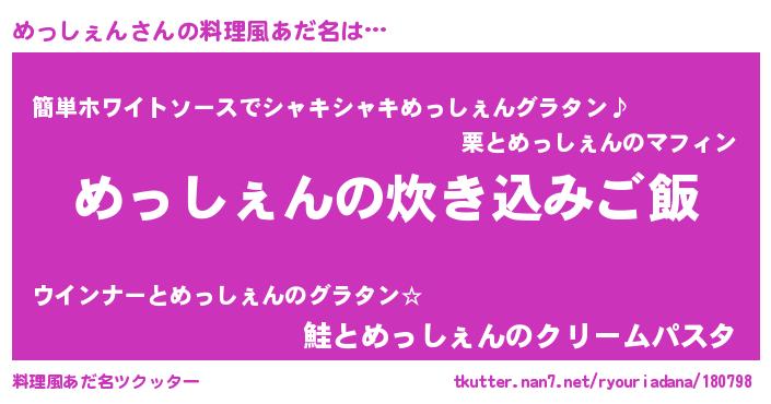 | 胡散臭い通販商品みたいなあだ名 | 『全米が絶賛したサプリメント…その名も「めっしぇん」』 |
