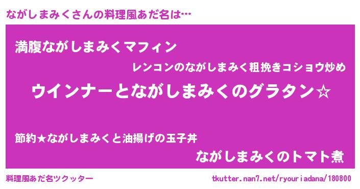 | ヘコむあだ名 | 『なまこ酢』『ながしまみく(小並感)』 |