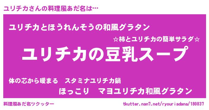 | ピコ太郎風あだ名 | 『ユリ八郎』『ピユ二郎』『ピコユ郎』 |