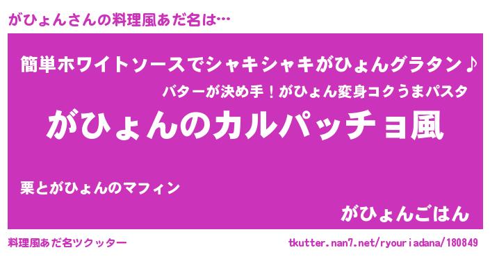 | ピコ太郎風あだ名 | 『ガヒ六郎』『ガガ太郎』『ピガ八郎』 |