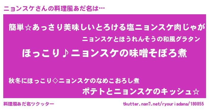 | ヘコむあだ名 | 『ニョふぇ~』『ニョンスケ(笑)』 |
