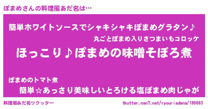 | ポケモン風あだ名 | 『ポマチュウ』『ヒポマメ』 |