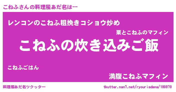 | 意味不明あだ名 | 『自称こねふ』『永久保存こねふ』 |